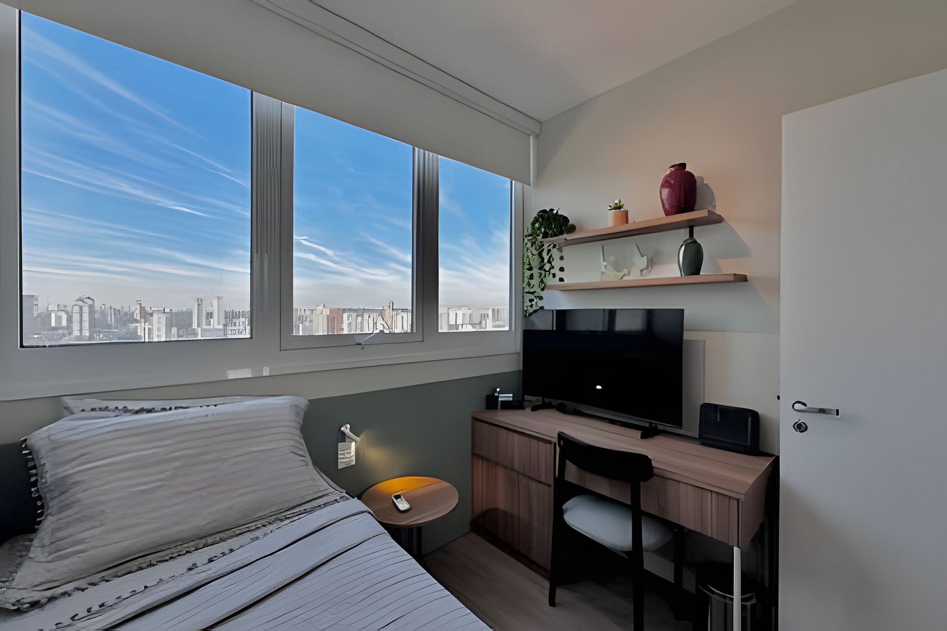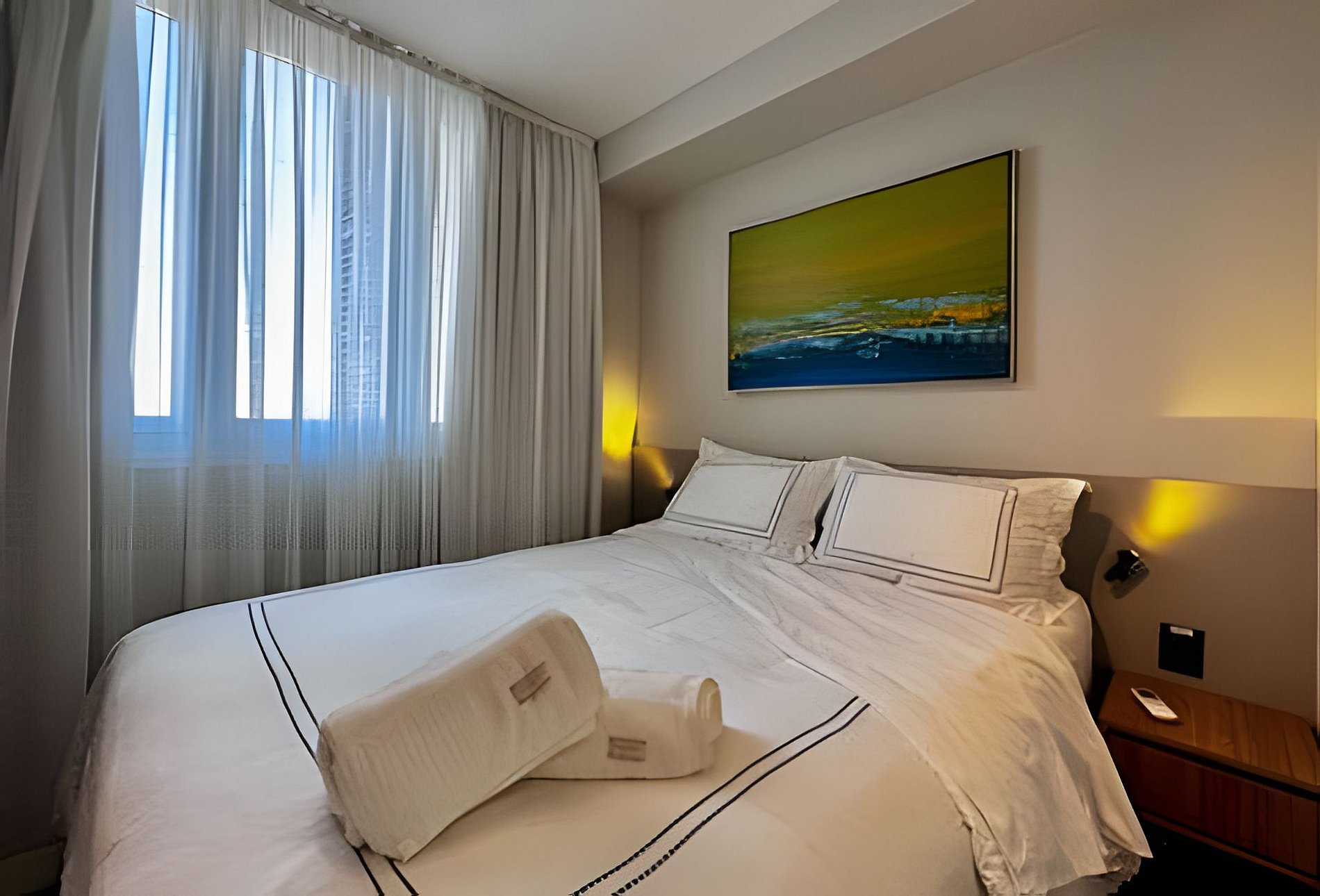 The apartment is quiet and room has darkening shades on suite to a great sleep.